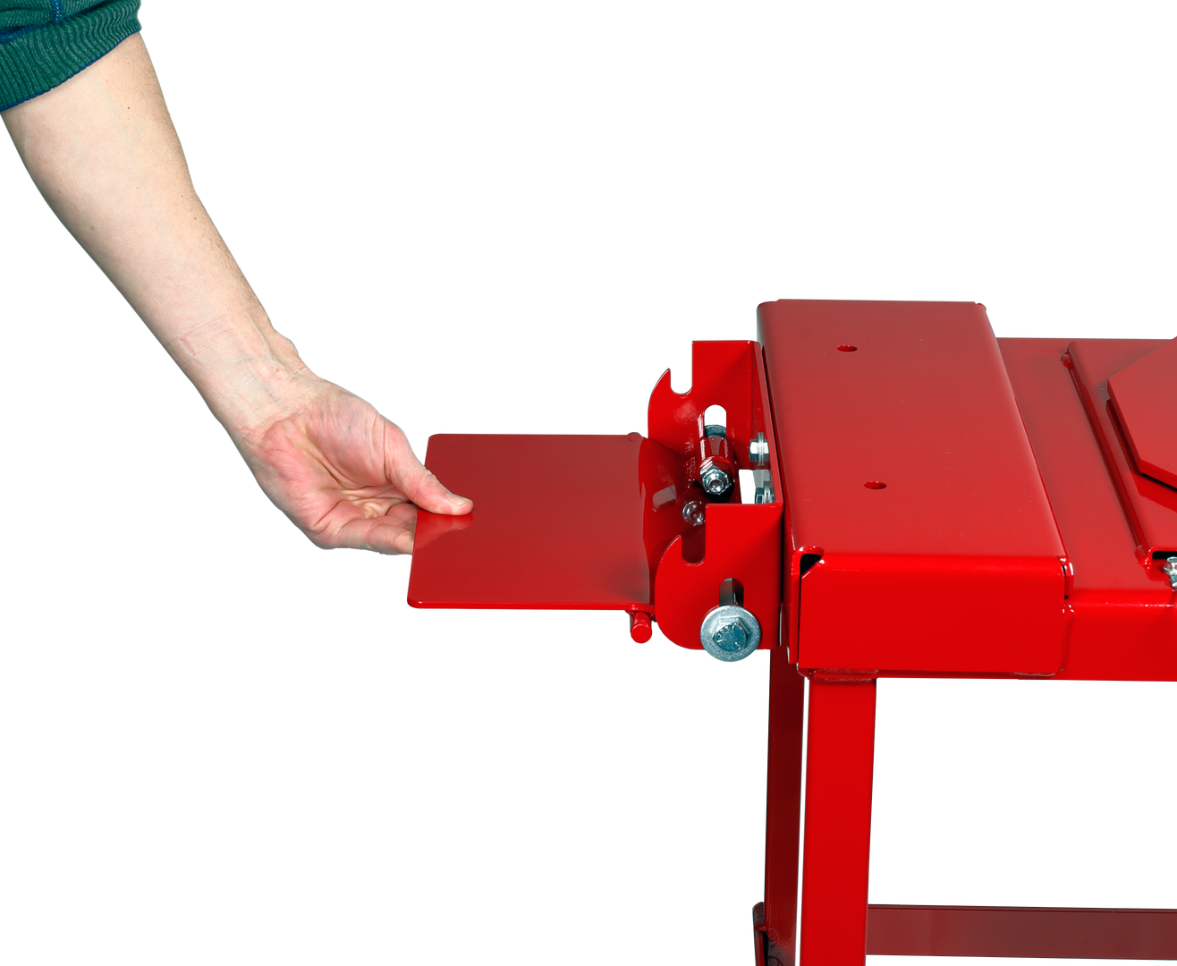 - Fold down wheel stops standard for clearance when using frame contact lifts.